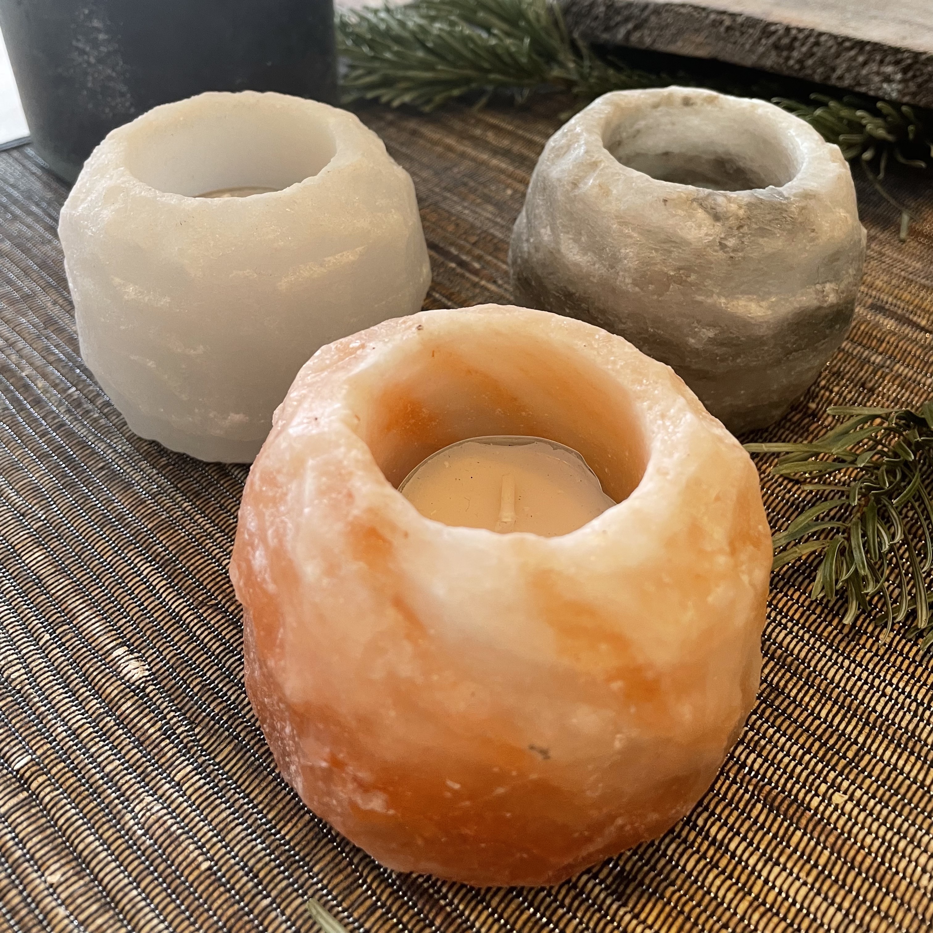 Salz Teelichthalter- Roh/nicht geschliffen